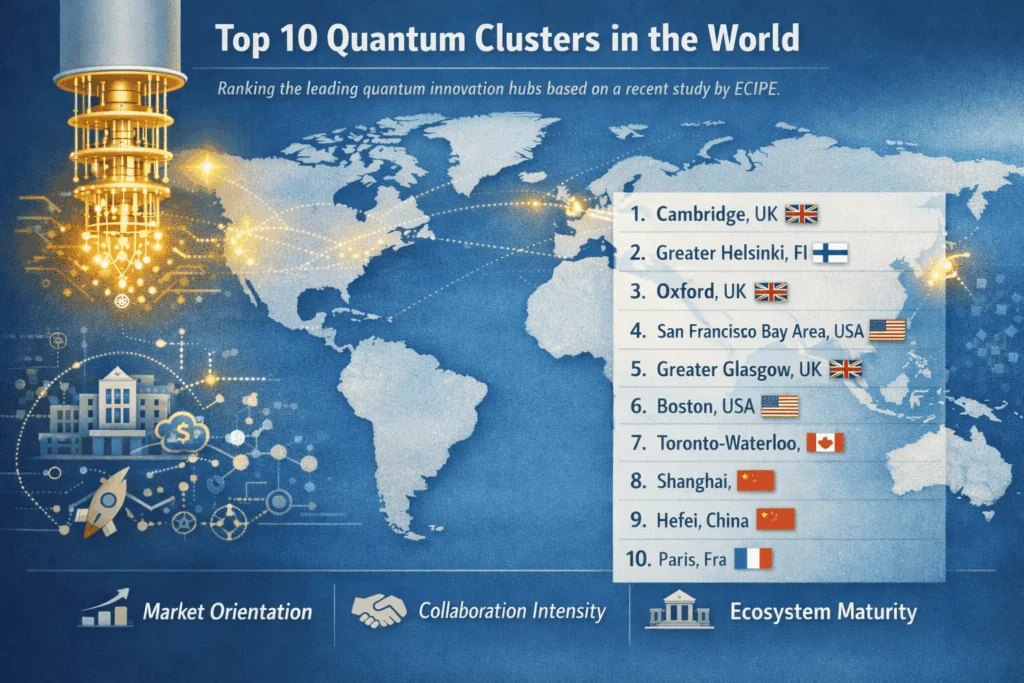 The report, Quantum Clusters: Ranking the World’s Deep-Tech Epicentres, offers a structured global ranking of these ecosystems. The analysis aims to move beyond national comparisons and examines where research institutions, startups, capital and industry partnerships physically converge.
